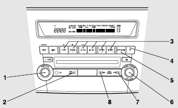 ► While “TP” is illuminated, the radio stops only at TP stations, even if the TUNE switch (6) is turned.